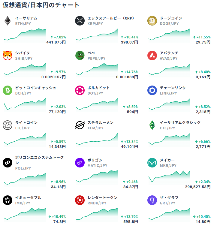 それより、ぺぺ・ドージなどのミームコインが元気なのがユニークです。今回は話題優先の値上がりっぽいですね。