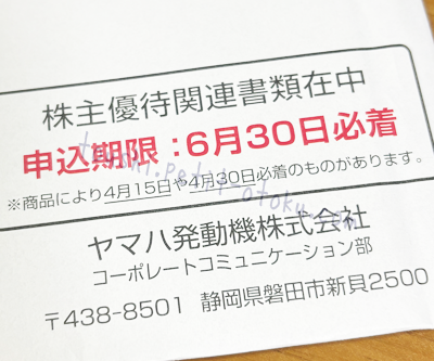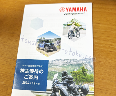 ということで、ヤマハ発動機(7272)の株主優待をもらいました。ありがとうございます。