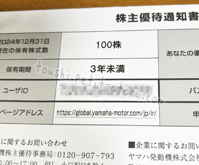 ヤマハ発動機(7272)の株主優待ですが、いくつか注意が必要です。