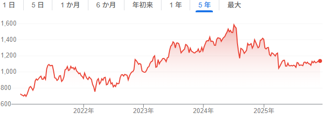 見ていると、コロナ後には順調に上がったけど、今度はトランプ関税で警戒されてまた下がっている感じです。輸送用機器はトランプ関税がダイレクトに逆風になるので、それがそのまま株価の圧力になっている感じ。