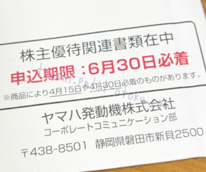 このブログでは79回目となる&# … 続きを読む 【優待☆到着!】ヤマハ発動機(7272)の株主優待が届きました☆自社カタログギフトがもらえる優待