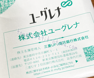 ユーグレナ(2931)の優待が到着したのは3月中旬。
