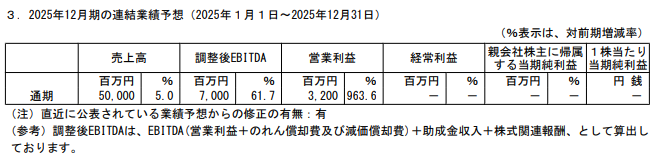 ユーグレナの12月期の連結業績予想。11月13日公表の『2025年12月期 第3四半期決算短信〔日本基準〕(連結)』より。https://www.nikkei.com/nkd/disclosure/tdnr/20251113599745/