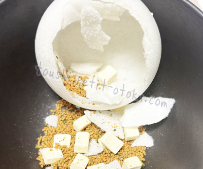 今回はモナカをパキパキ割って具材代わりにしてお湯を注いでいただきます。