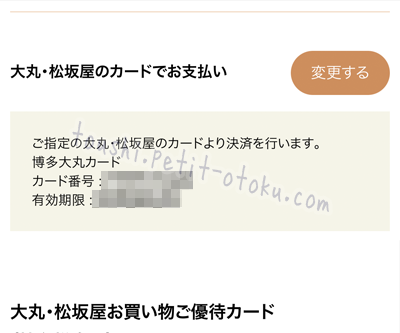 オンラインでお買い物するのは初めてで、今回は博多大丸カードがあるので問題はありませんでした。