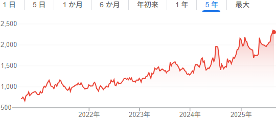 コロナ禍で逆風が吹いていたところからの回復、ということで、長い目で見ればとても順調です。インバウンド需要があり、訪日客のブランドショッピング需要などで伸びた感じ。こういってはなんですが、アフターコロナとインバウンドという、過去5年ではとても大きい需要にうまく乗った感じの銘柄だなと思います。
