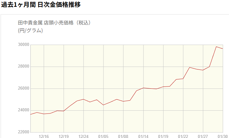 水・木と金価格最高値を更新して、とうとう木曜日14時には3万円突破。