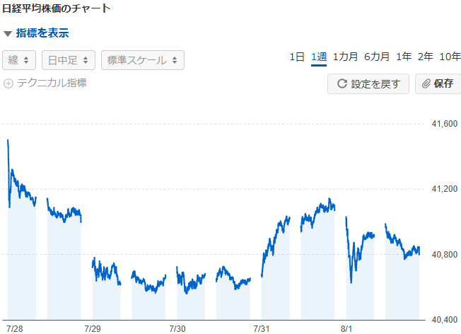 今週の日経平均は、41534円が最高値で、最安値が40556円の、1000円くらいの値動きでした。