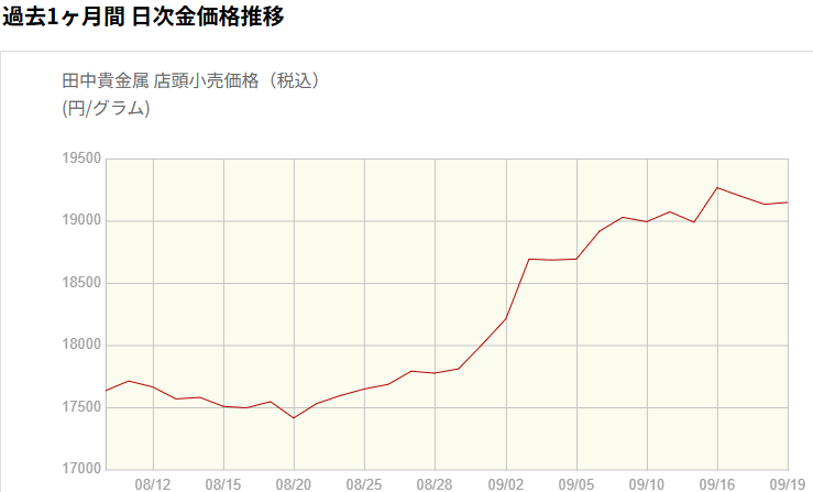 16日火曜日に、ついに19265円/gの最高値更新。