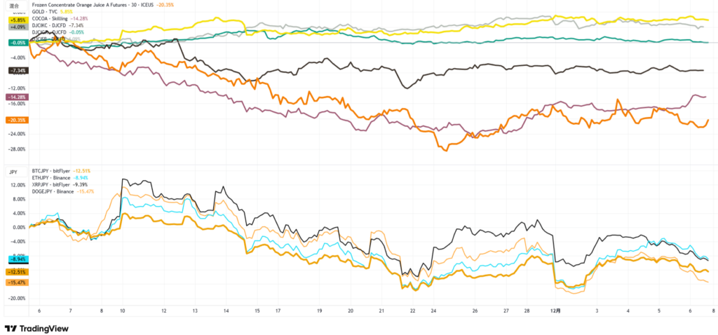 最後に、コモディティや仮想通貨のチャートを貼っておしまいにします。