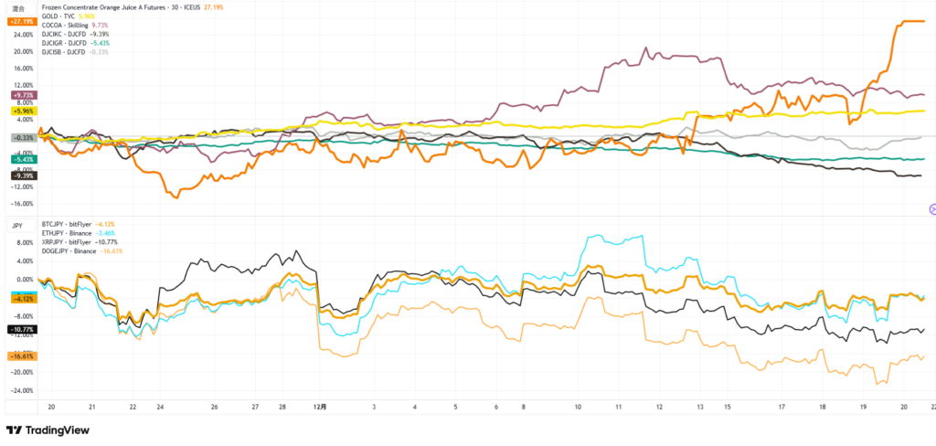 最後に、コモディティや仮想通貨のチャートを貼っておしまいにします。